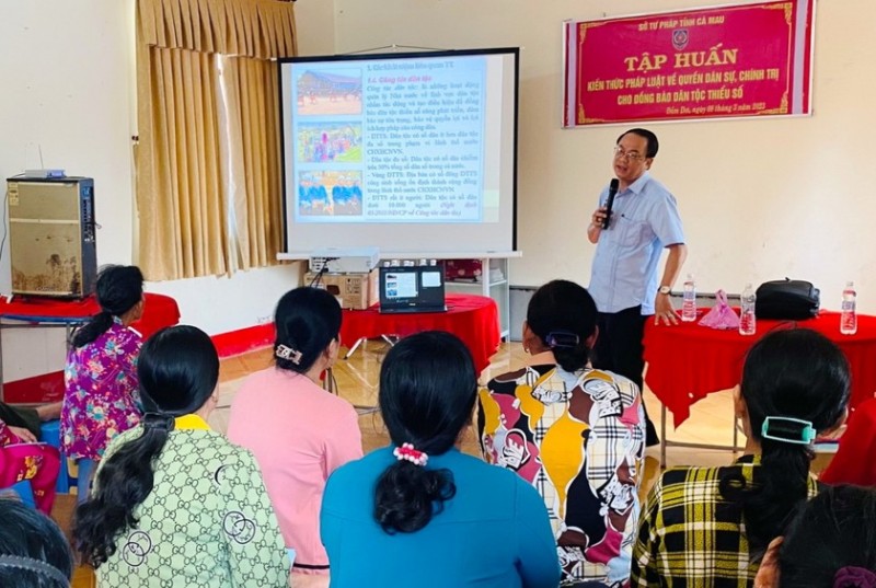 Sở Tư pháp tỉnh Cà Mau cũng đã tổ chức các lớp tập huấn kiến thức pháp luật về các quyền dân sự, chính trị cho đồng bào dân tộc thiểu số với nội dung như trên tại Saltel Khánh Lâm (huyện U Minh); Salatel Hiệp Hòa Tây, huyện Đầm Dơi và Chùa Cao Dân (huyện Thới Bình).