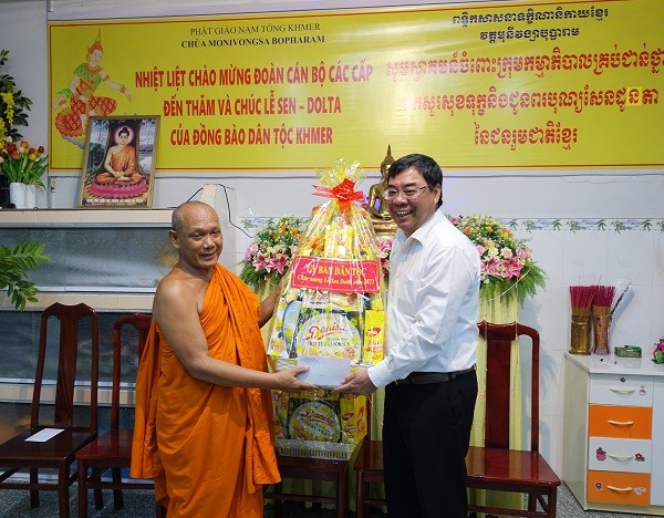 Sáng ngày 23/9/2022, Đoàn công tác của Ủy ban Dân tộc do Phó Vụ trưởng Vụ địa phương III, Ủy ban Dân tộc Tào Việt Thắng làm trưởng đoàn đã đến thăm, tặng quà và chúc mừng lễ Sen Dolta Hội Đoàn kết sư sãi yêu nước tỉnh, Chùa Monivongsa, người uy tín tiêu biểu, gia đình chính sách và hộ đồng bào dân tộc Khmer trên địa bàn thành phố Cà Mau.