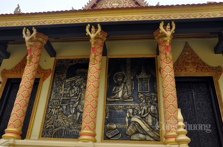 | Trang trí hoa văn của người Khmer trên công trình tạo tác rất tinh tế và công phu, tính thẩm mỹ cao |