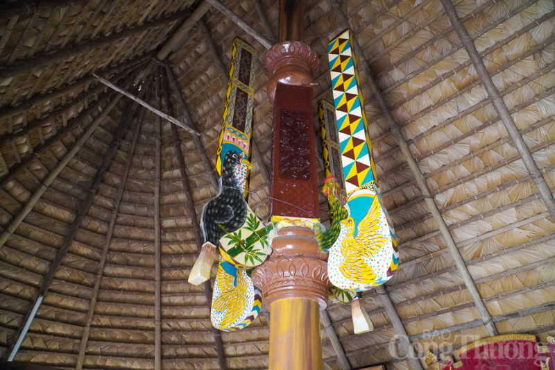 | Đặc biệt là cây cột cái nhà, một tâm điểm trang trí đậm bản sắc người Cơ Tu. |
