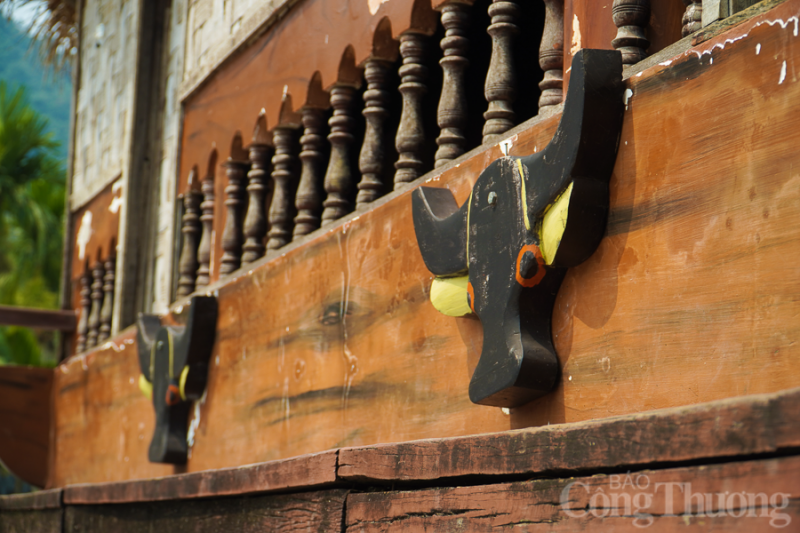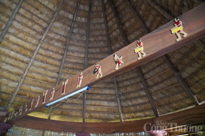 | Trên các cây xà ngang và xà dọc thường được trang trí các tác phẩm điêu khắc, tranh vẽ, phù điêu hay hoa văn trang trí in đậm bản sắc người Cơ Tu. |