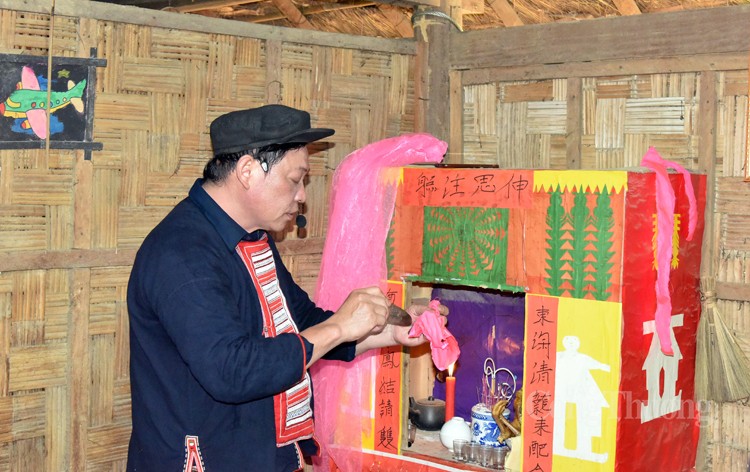 | Thầy cúng báo cáo thần linh, thổ địa, tổ tiên để xin phép đi xin dâu |