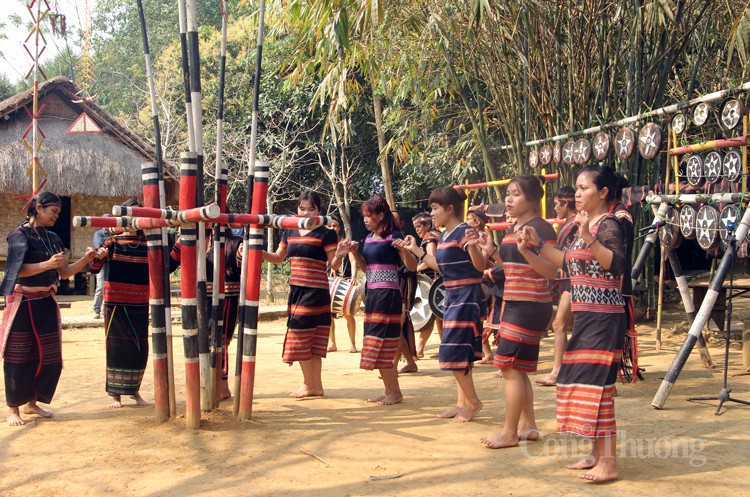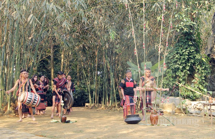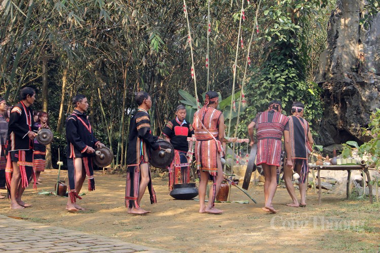 | Diễn tấu cồng chiêng, hòa mình vào vòng xoang mừng cho lễ cúng bến nước |