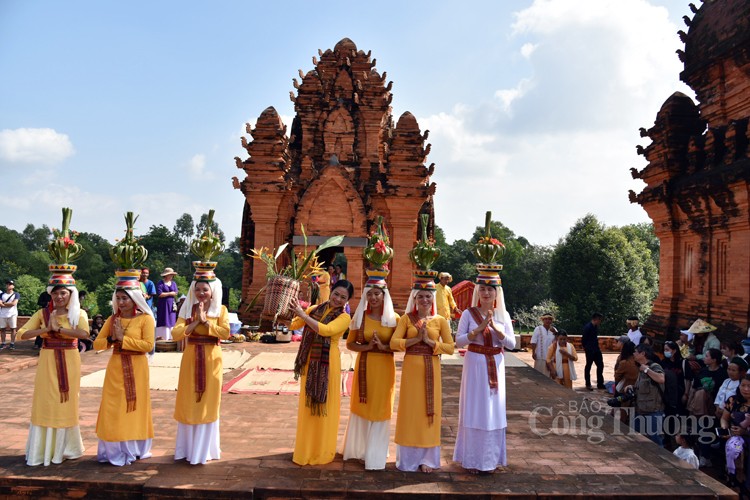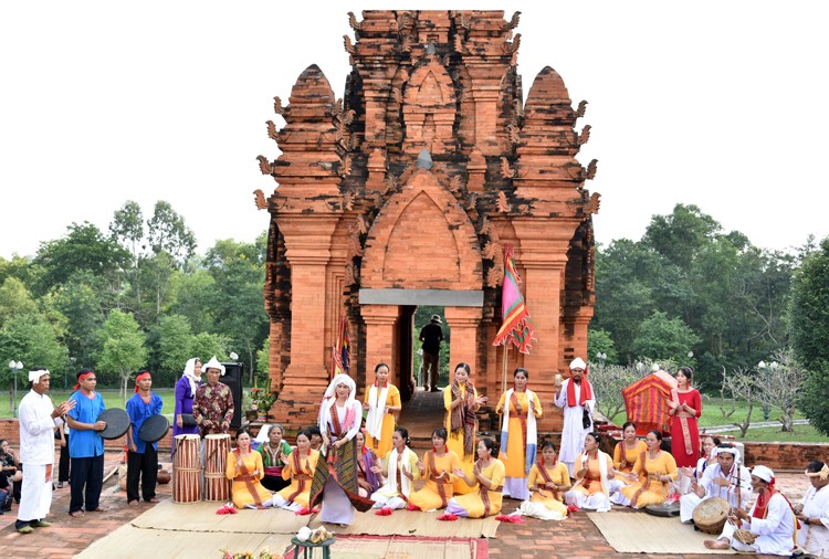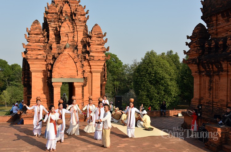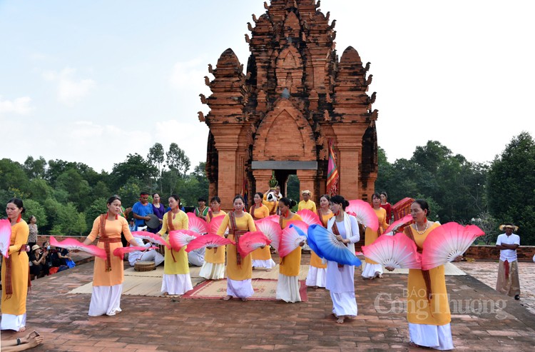 Sau khi kết thúc lễ mở của tháp, bên ngoài tháp bắt đầu rộn ràng những lời ca điệu múa truyền thống của đồng bào Chăm hòa nhịp cùng tiếng trống Ginăng, kèn Saranai… Những cô gái Chăm duyên dáng trong bộ trang phục áo dài truyền thống của phụ nữ Chăm cùng những múa Apsara, điệu múa quạt hòa quyện với âm thanh độc đáo, đặc sắc của tiếng trống Paranưng bập bùng, tiếng kèn Saranai réo rắt.