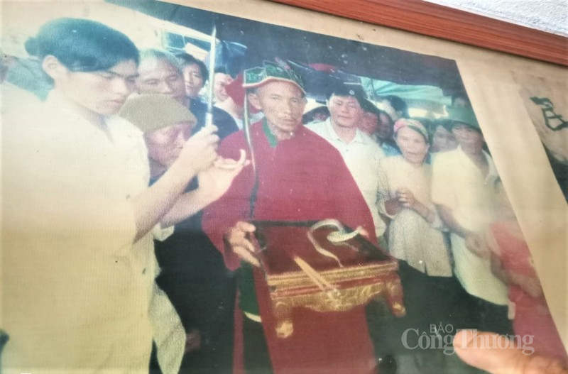 | Bức ảnh chụp lại về hình ảnh người dân xã Tùng Lộc tổ chức lễ rước “ngài rắn” vào đền thờ |