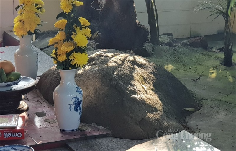 | Hòn đá ở xã Thanh Lộc được người dân gọi “thần đá” có bàn thờ, lư hương, bình hoa |