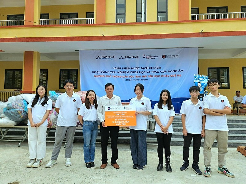 Đặc biệt Câu lạc bộ Helio English - chuyên dạy Tiếng Anh cho các em tiểu học trường công tại Hà Nội, đã dành toàn bộ nguồn thu trong 3 tháng tổ chức hoạt động trải nghiệm bao gồm các thí nghiệm trong môn vật lý, hóa học để truyền cảm hứng cho các em học tập môn khoa học tự nhiên tưởng chừng rất khô khan. Câu lạc bộ Helio English cũng vận động được Trường tiểu học Alaska tặng các em 3 bộ máy tính còn mới kèm bàn ghế và Hiệp hội Blockchain Việt Nam tặng 50 thùng mì tôm, 10 thùng xúc xích để cải thiện bữa ăn hàng ngày cho học sinh của trường.