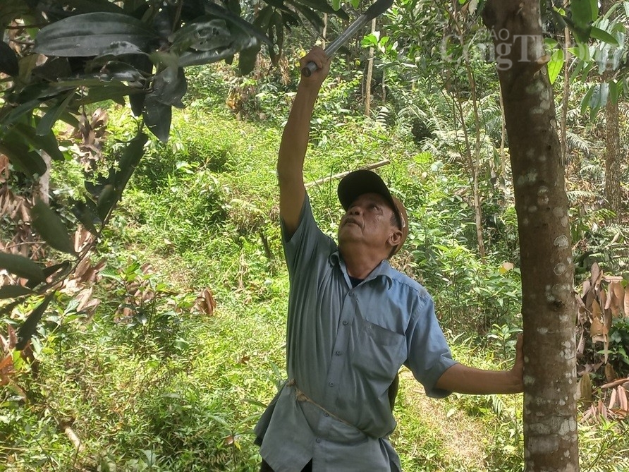 | Hàng ngày, ông Hà Ngọc Khang thường đi sâu vào những cánh rừng, chặt phát đi những bụi rậm để cây sinh trưởng và phát triển (Ảnh Hà Khải). |
