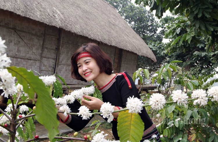 Mùa hoa cà phêTây Nguyên nở không chỉ mê hoặc du khách gần xa mà đến người nông dân trồng cà phê cũng bị hương thơm nồng nàn ấy quyến rũ. Dưới nền trời trong xanh và nắng vàng quyện màu đất đỏ bazan, màu trắng hoa cà phê càng nổi bật giữa không gian, cuốn hút mắt nhìn, giống như vẻ đẹp của cô gái Tây Nguyên đang tuổi xuân thì, đẹp rực rỡ và tinh khiết.