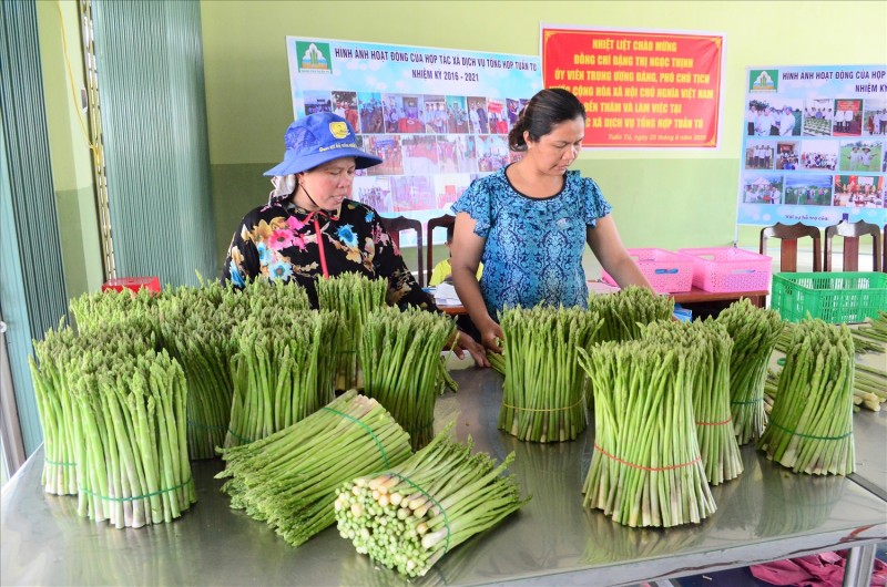 Những năm qua, nhiều bà con nông dân ở đây đã thực hiện mô hình chuyển đổi cơ cấu cây trồng kém hiệu quả sang trồng cây măng tây xanh, áp dụng mô hình canh tác VietGAP, đem lại thu nhập khoảng trên 200 triệu đồng/ha/năm.