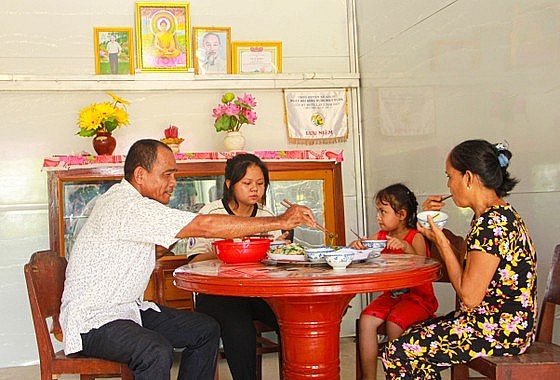 Quây quần bên mâm cơm cùng gia đình mừng ngày đầu tiên vào ở căn nhà mới, ông Kim Sol (58 tuổi, dân tộc Khmer, ngụ xã Thới An Hội, huyện Kế Sách) không giấu được niềm vui, nói: “Vợ chồng tôi chỉ có 2 công ruộng, sản xuất quanh năm cũng chỉ đủ gạo ăn. Vậy nên mẹ tụi nhỏ phải lên Bình Dương làm thuê, còn tôi phải chạy xe ôm mỗi ngày để có thêm tiền nuôi 2 cháu. Căn nhà cũ kỹ, hư hỏng đã lâu nhưng không có tiền sửa chữa. Nay nhờ được lãnh đạo địa phương quan tâm hỗ trợ xây mới hoàn toàn căn nhà, gia đình tôi mừng lắm. Nhờ vậy mà dịp lễ Sene Dolta năm nay gia đình có được chỗ ăn, chỗ ở sum vầy”.