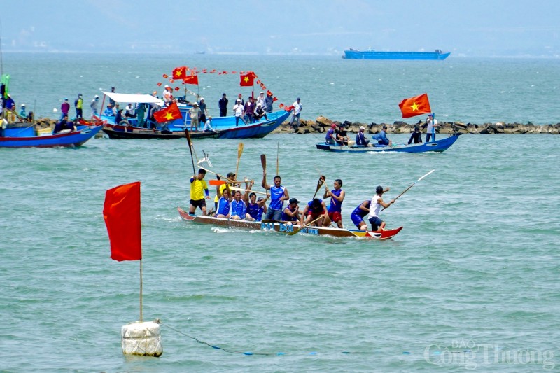 | Trong buổi sáng diễn ra Hội đua, hàng nghìn du khách và người dân địa phương đã đến bên vùng biển để theo dõi, cổ vũ cho các đội thi. |
