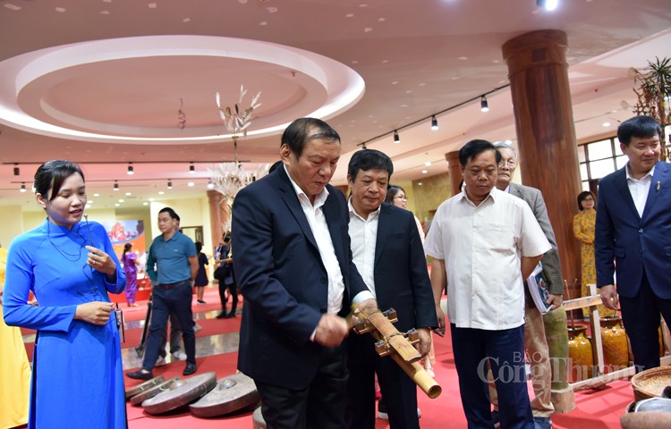 | Bộ trưởng Bộ VHTTDL Nguyễn Văn Hùng và các đại biểu tham quan Triển lãm |